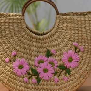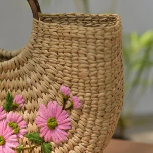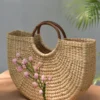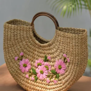 Túi Xách Cỏ Kouna Dáng Chữ U Thêu Hoa Văn